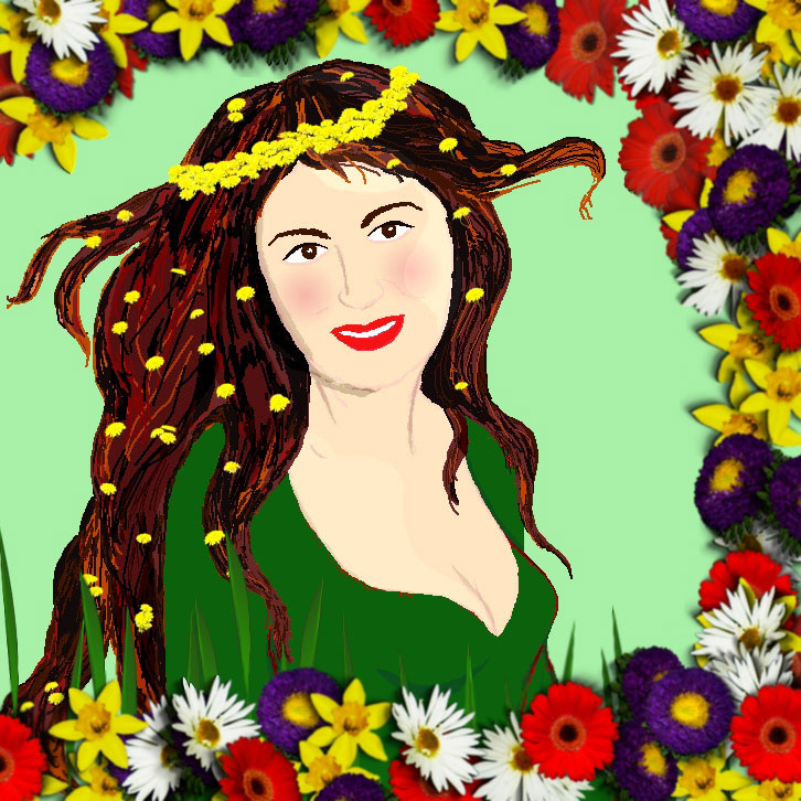 Рисовано в фотошопе руками с настоящей фотографии, кроме цветов, а букашка тоже моя(если ее вообще видно).